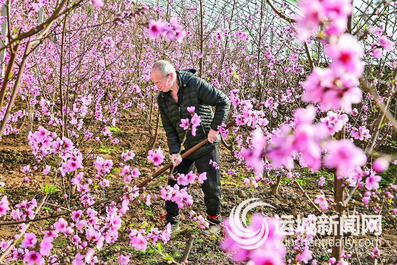 1月8日,稷山县清河镇稷王现代农业示范园内,温室大棚宛如春日天地,桃花竞相绽放,粉白相间、美不胜收。