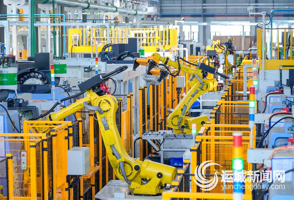 山西永济阳煤千军汽车部件有限公司车间内智能化机器人正在加紧作业。
