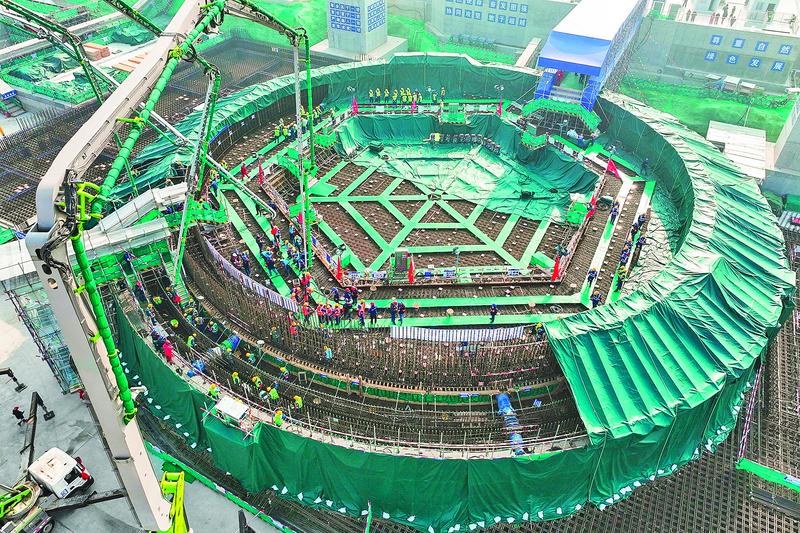 当天,位于江苏省连云港市的江苏徐圩核能供热发电厂1号机组核岛开始混凝土浇筑,项目进入主体工程建设阶段。这是“十五五”开局之年我国开工建设的首台核电机组。 新华社记者 毛俊 摄