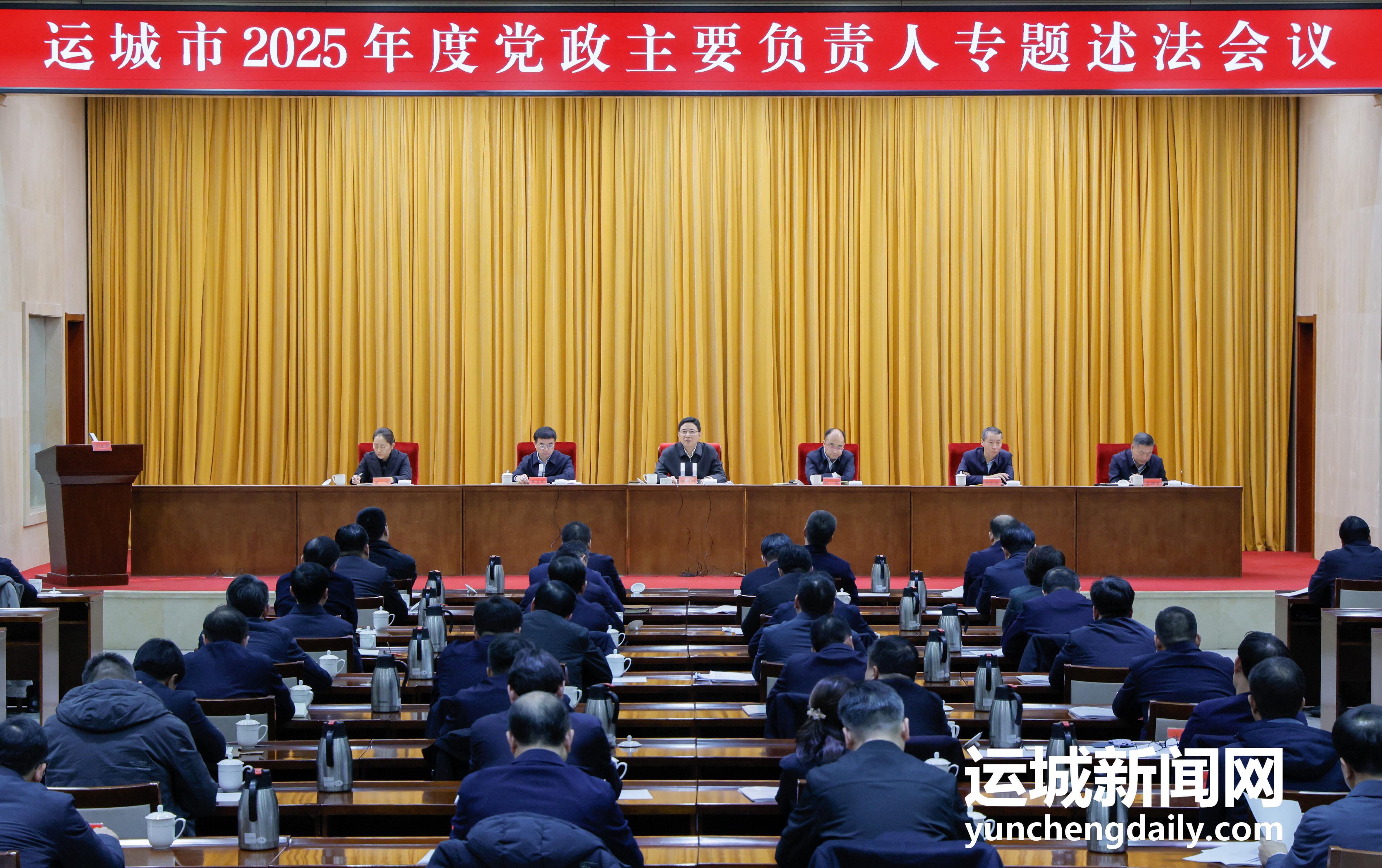 本报讯(记者 张 越)1月21日,我市召开2025年度党政主要负责人专题述法会议,深入学习贯彻习近平法治思想,全面落实党中央及省委决策部署,压紧压实法治建设第一责任人职责,进一步树牢法治意识、提升法治能力,努力建设更高水平的法治运城。市委书记储祥好出席并作点评讲话。市委副书记、市长姚逊出席。市委副书记、政法委书记王立刚主持。市人大常委会主任那志茂出席。市领导赵晔、孟维君、杜中伟、闫晓刚,市法检“两长”出席。
