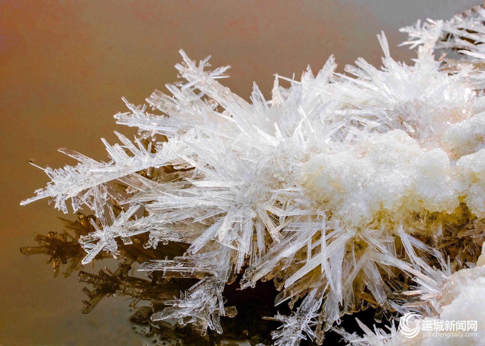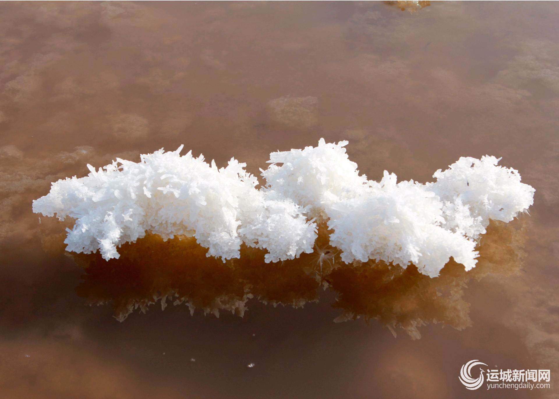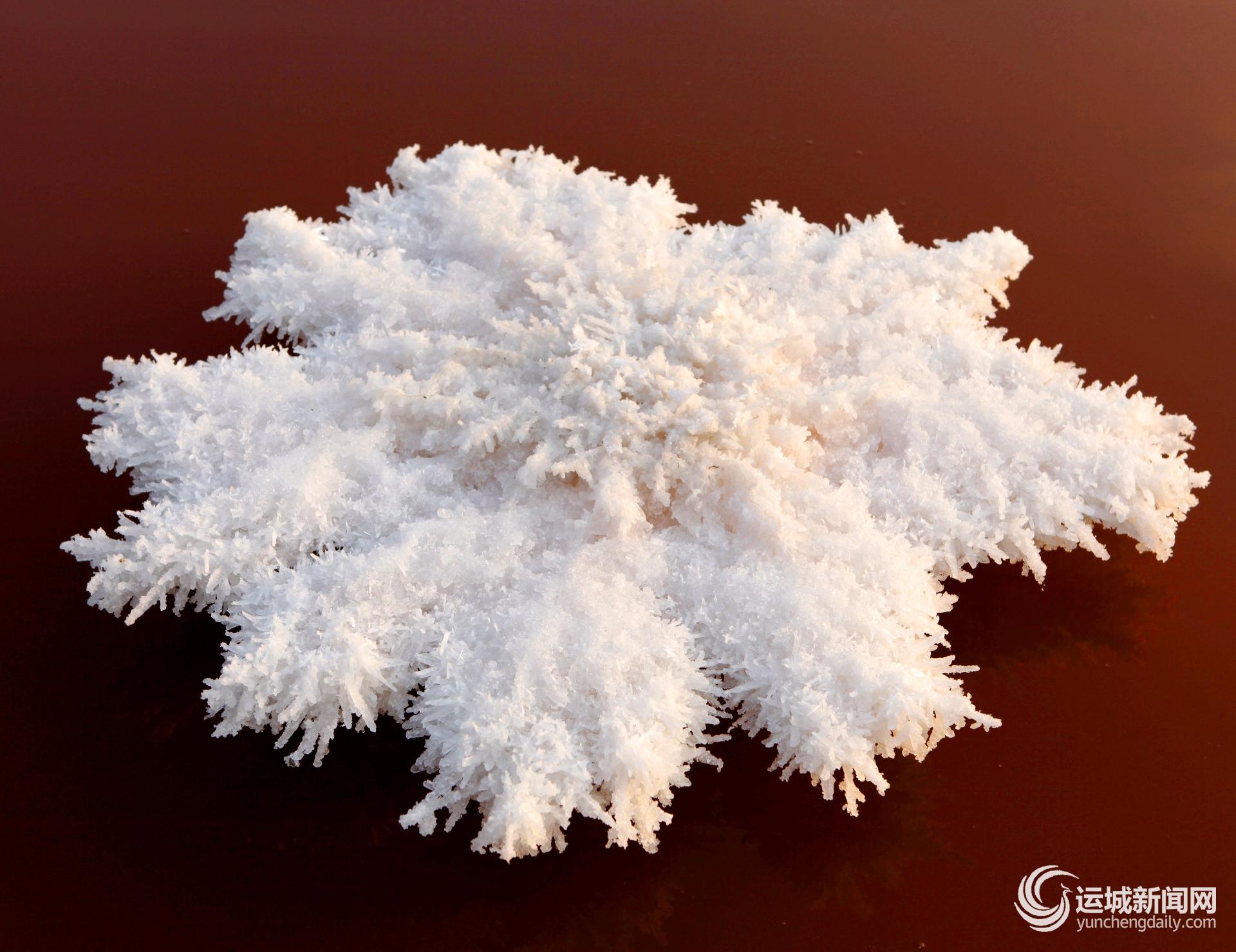 硝花是运城盐湖独有的自然奇观,需在气温降至零下5℃以下的严苛条件下,水中硫酸钠与硫酸镁才会缓慢析出结晶、聚合成形。
