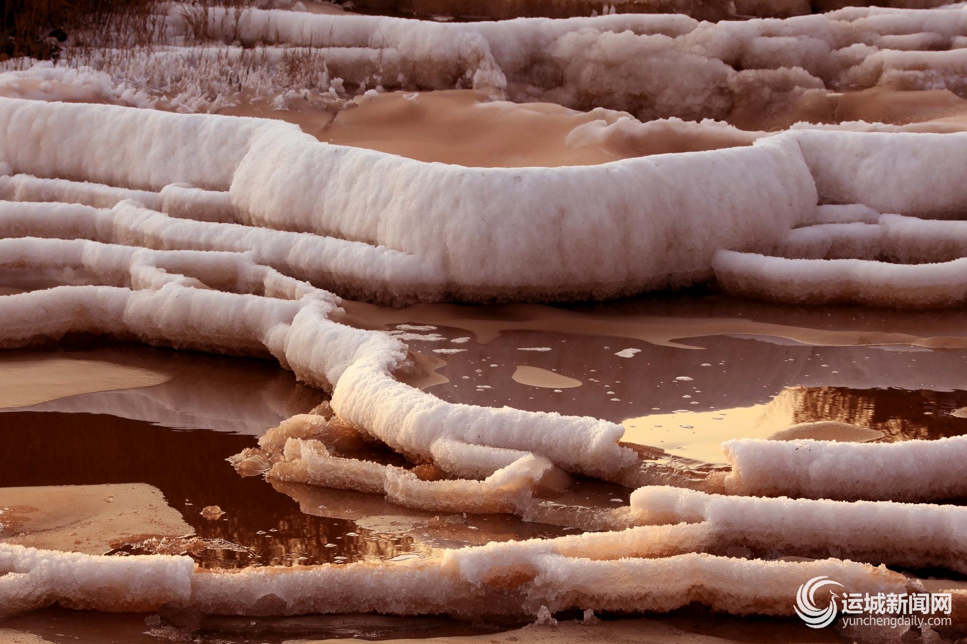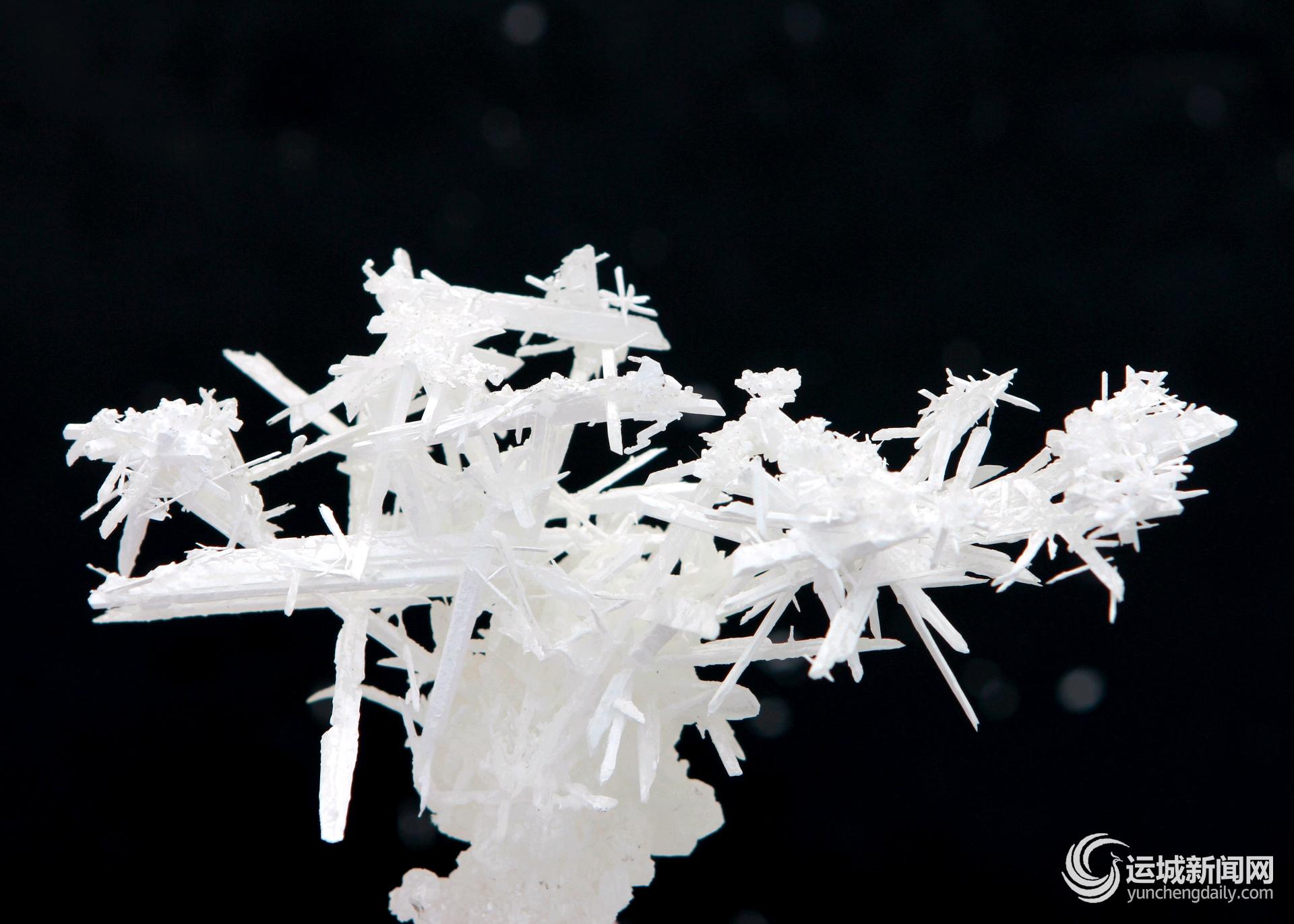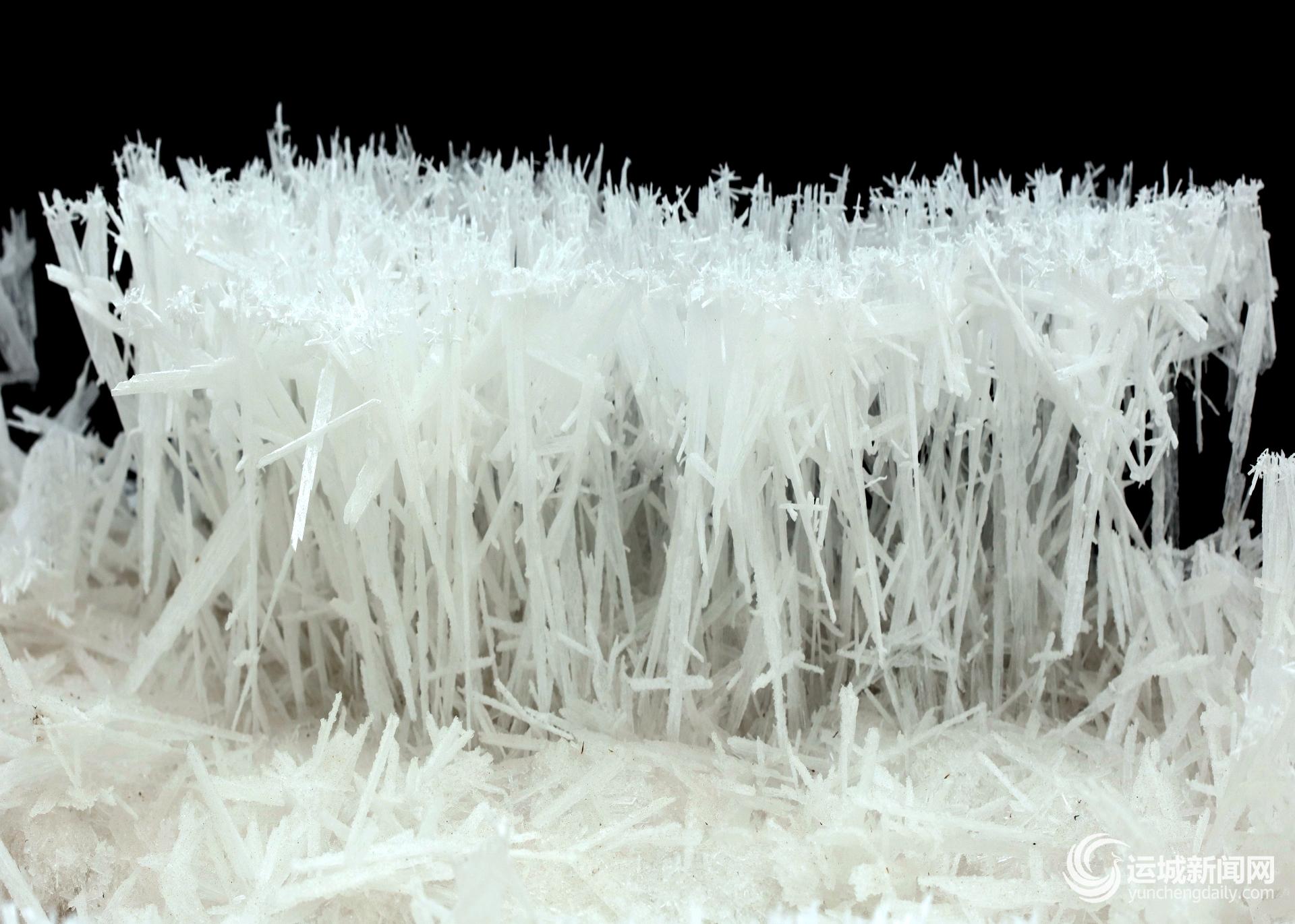 硝花是运城盐湖独有的自然奇观,需在气温降至零下5℃以下的严苛条件下,水中硫酸钠与硫酸镁才会缓慢析出结晶、聚合成形。