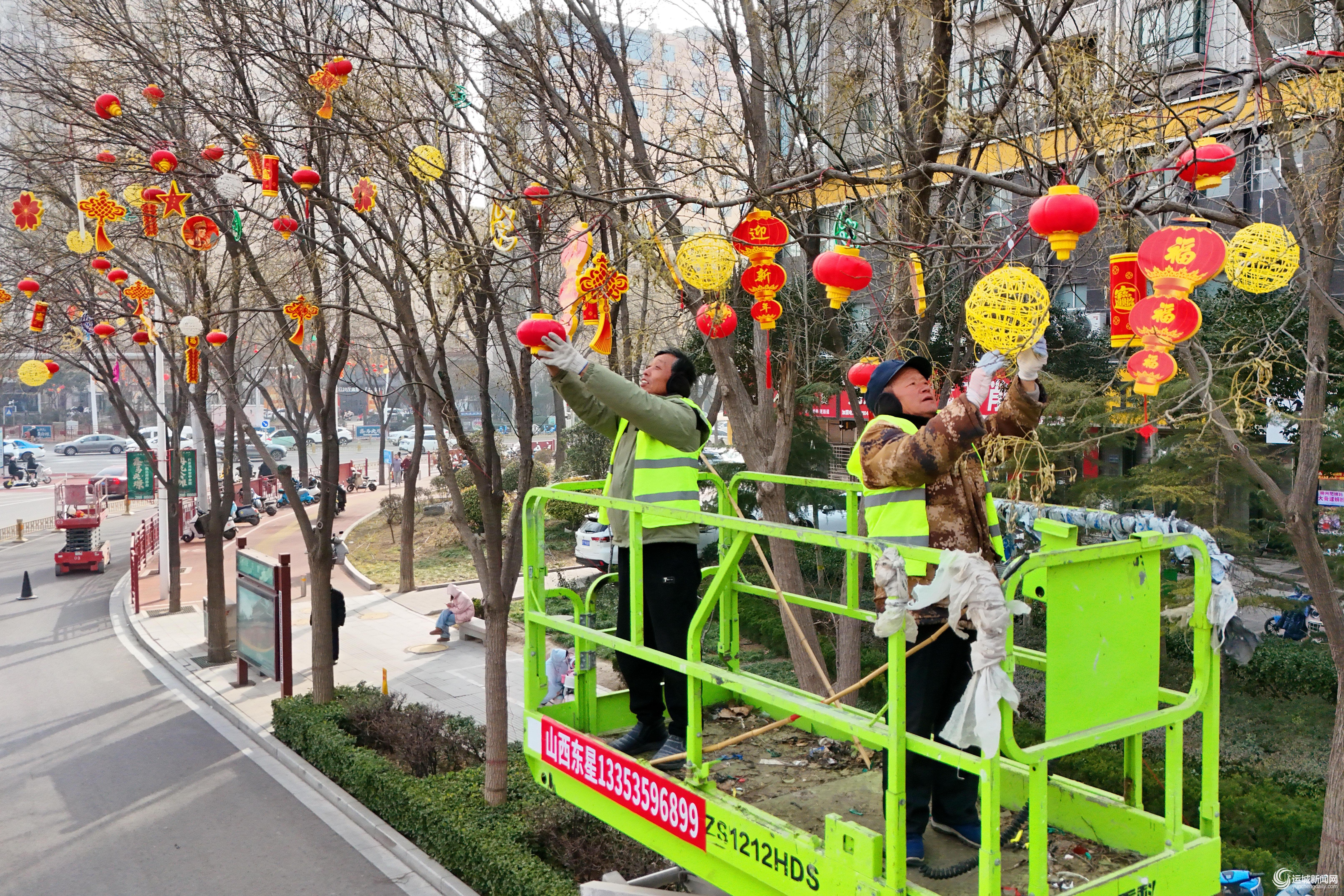 春节临近,市城市管理局组织人力在中心城区主要街道安装迎新花灯,喜庆、祥和的春节氛围日益浓厚。 记者 朱超逸丁 摄
