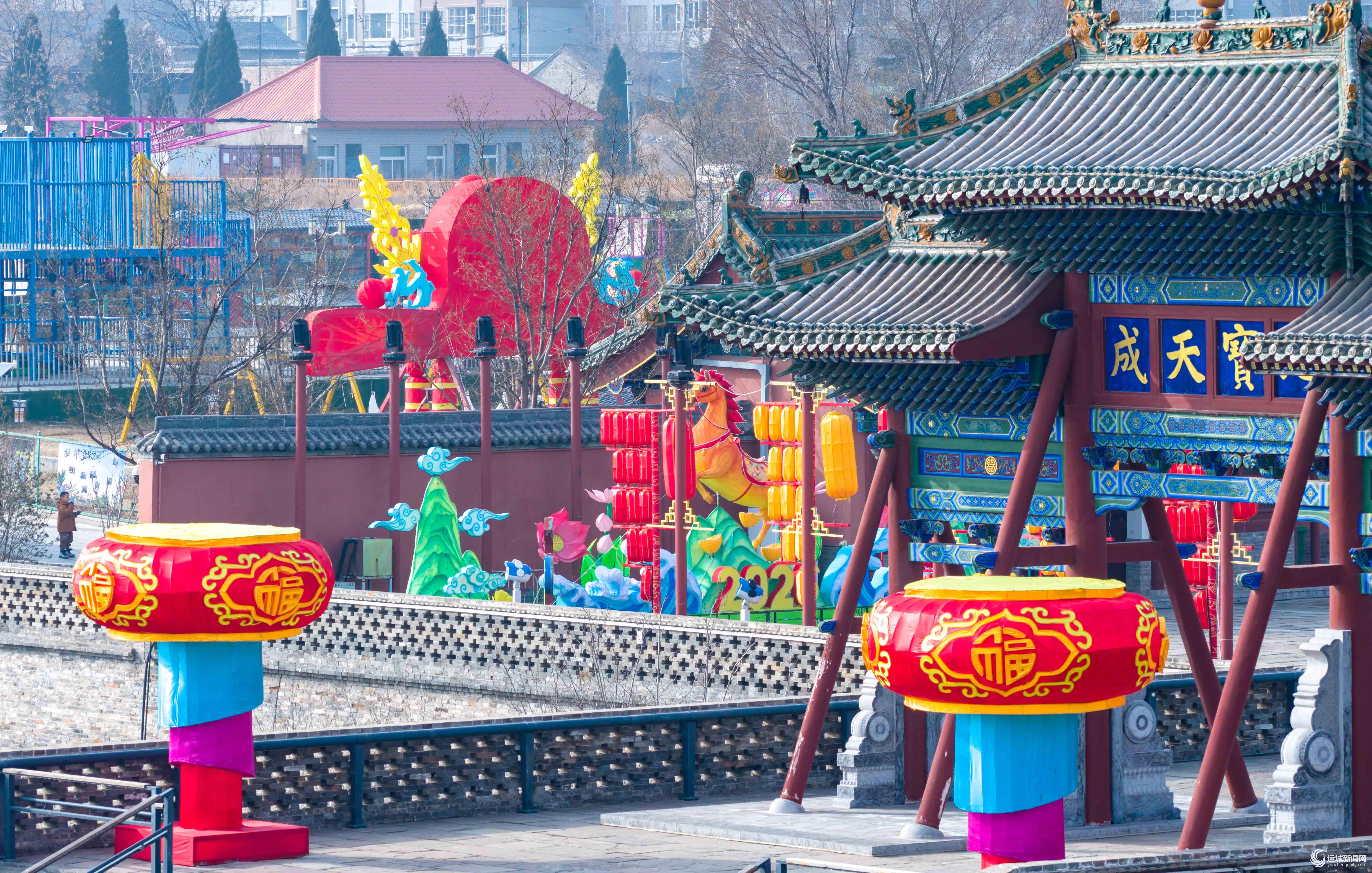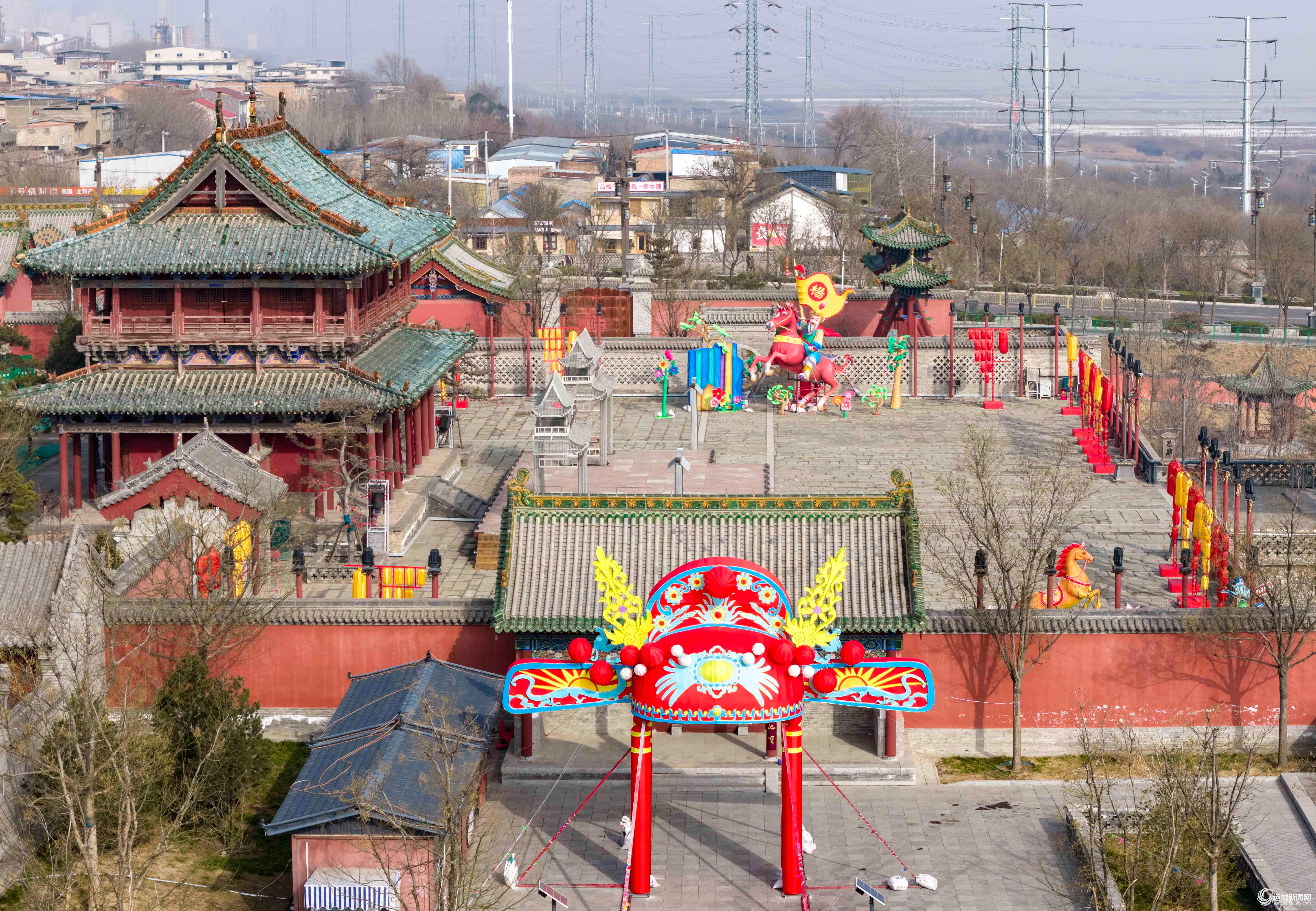 1月27日,中心城区河东池盐文化博览园内,工作人员正在加紧组装春节特色灯组。
