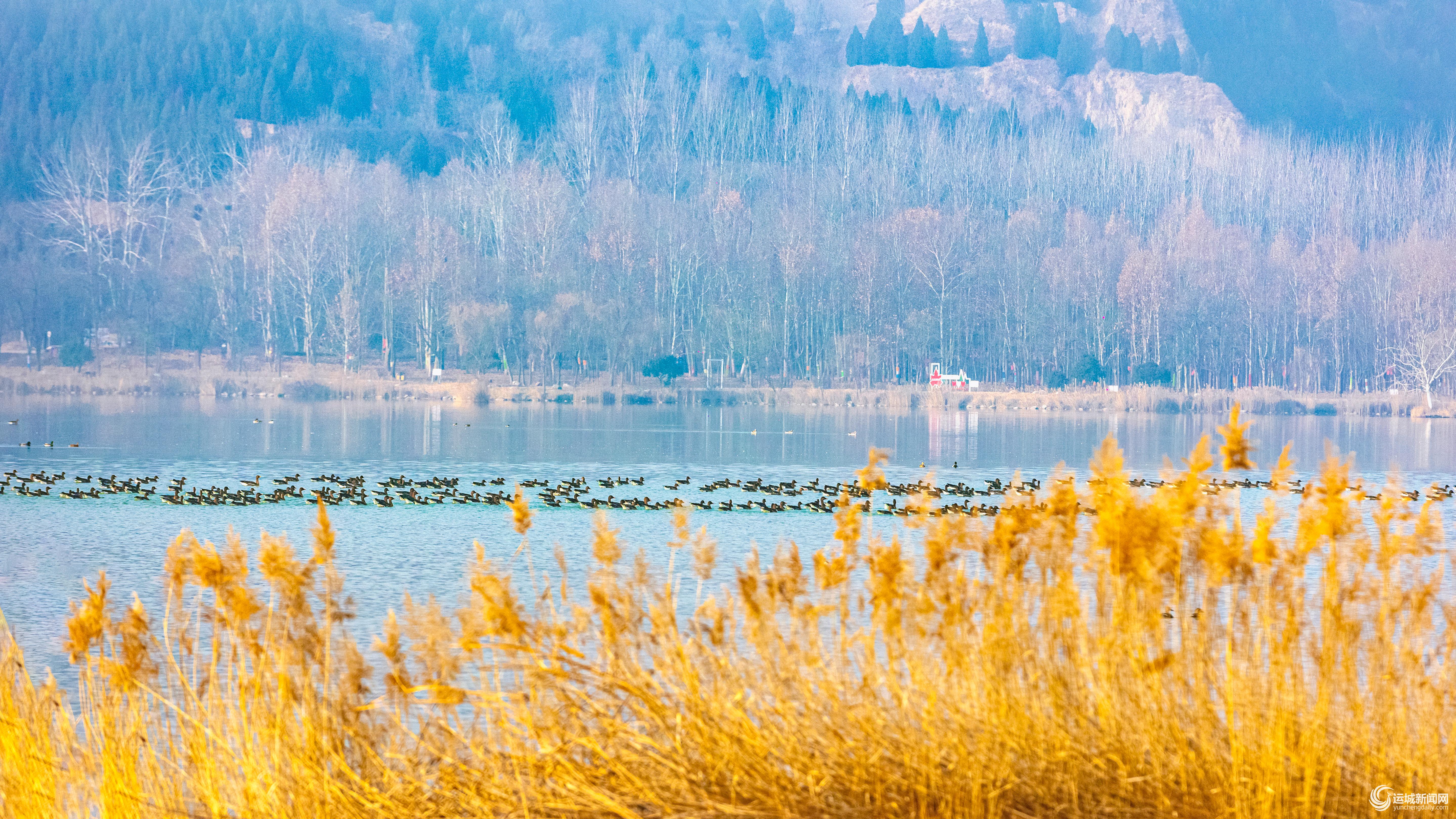 1月28日,冬日的芮城县黄河湿地内,宽阔的河面上成群候鸟自在游弋,清脆的鸣叫声此起彼伏。灵动的飞鸟与粼粼的波光相映成趣,勾勒出一幅“黄河湿地鸟欢唱”的生态画卷。