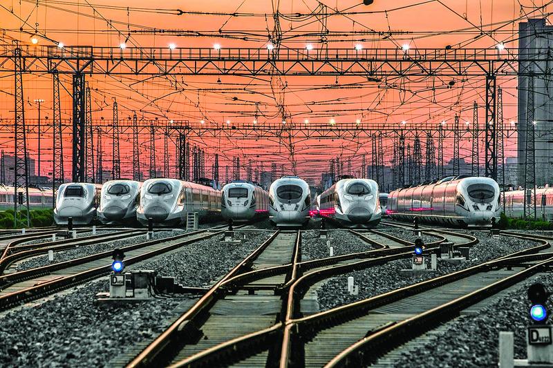 春运大幕即将拉开,中国铁路西安局集团有限公司西安动车段内,高铁动车组静候待发。