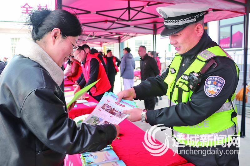2月10日,夏县县委宣传部、文明办在瑶峰镇全村文化广场举办新时代文明实践“文明集市”宣传活动。夏县公安局交通管理大队以此次活动为契机,组织警力联合返乡大学生志愿者开展“美丽乡村行”交通安全巡回宣讲活动,进一步筑牢农村地区道路交通安全防线。