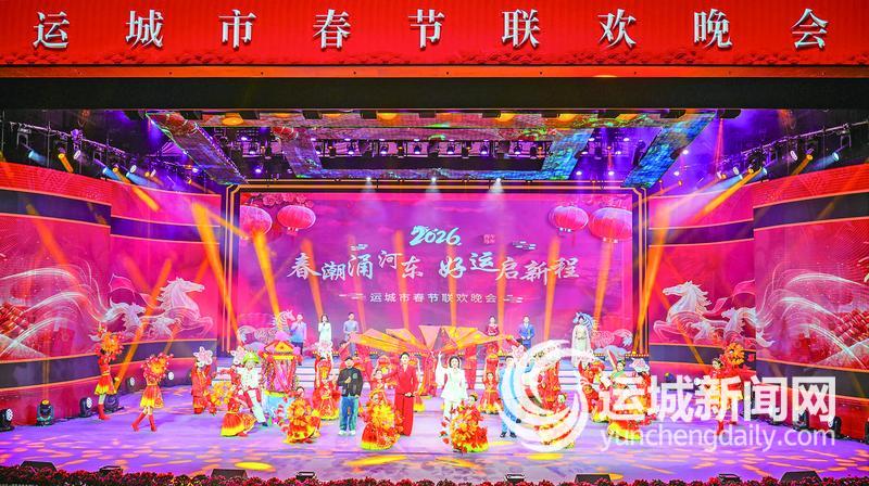 本报讯(记者 游映霞)东风浩荡,河东大地春意盎然;策马奋进,好运之城再启新程。2月12日晚8点,“春潮涌河东 好运启新程”2026年运城市春节联欢晚会在运城会展中心精彩上演。晚会由市委、市政府主办,融合舞蹈、歌曲、器乐合奏、小品、戏曲、鼓乐等多种艺术形式,为全市人民献上一场年味浓郁、底蕴深厚的文化盛宴,生动展现了新时代河东儿女昂扬向上、奋楫争先的精神风貌。