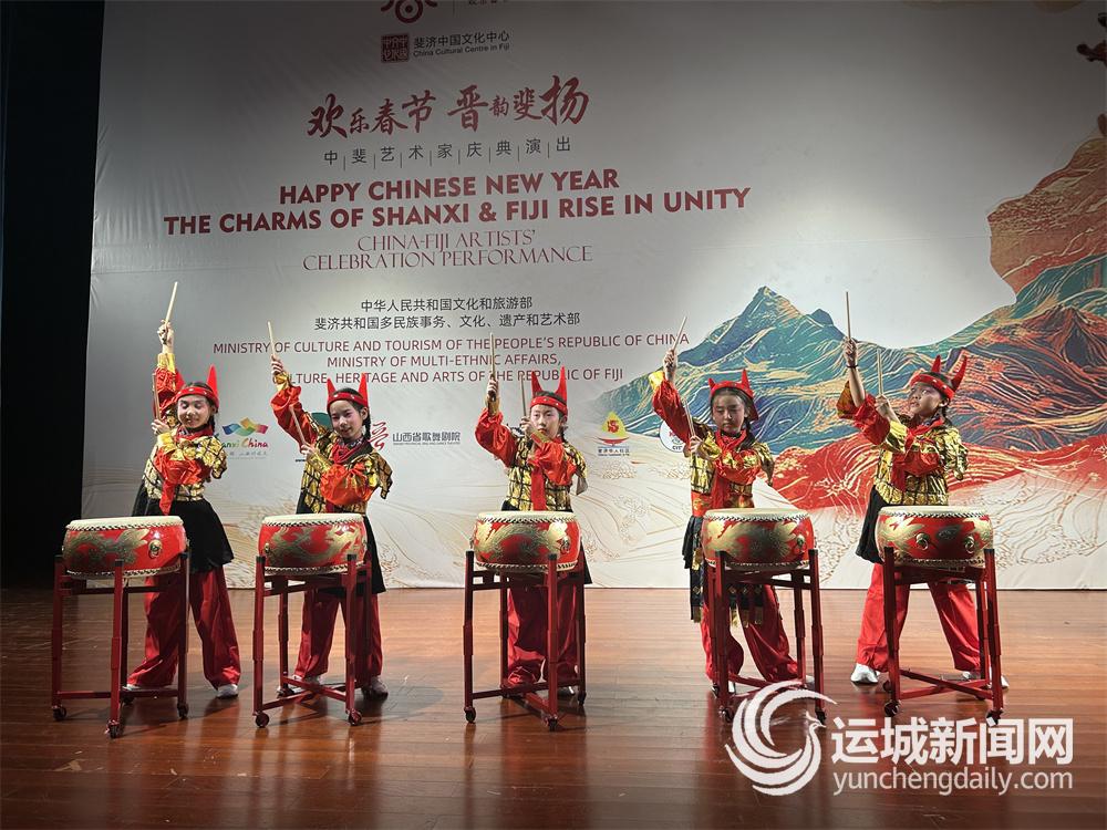 运城晚报讯 2月10日、11日,受山西省文化和旅游厅特邀,新绛县西街实验小学绛州鼓乐队参加了南太平洋斐济共和国2026欢乐春节系列活动。