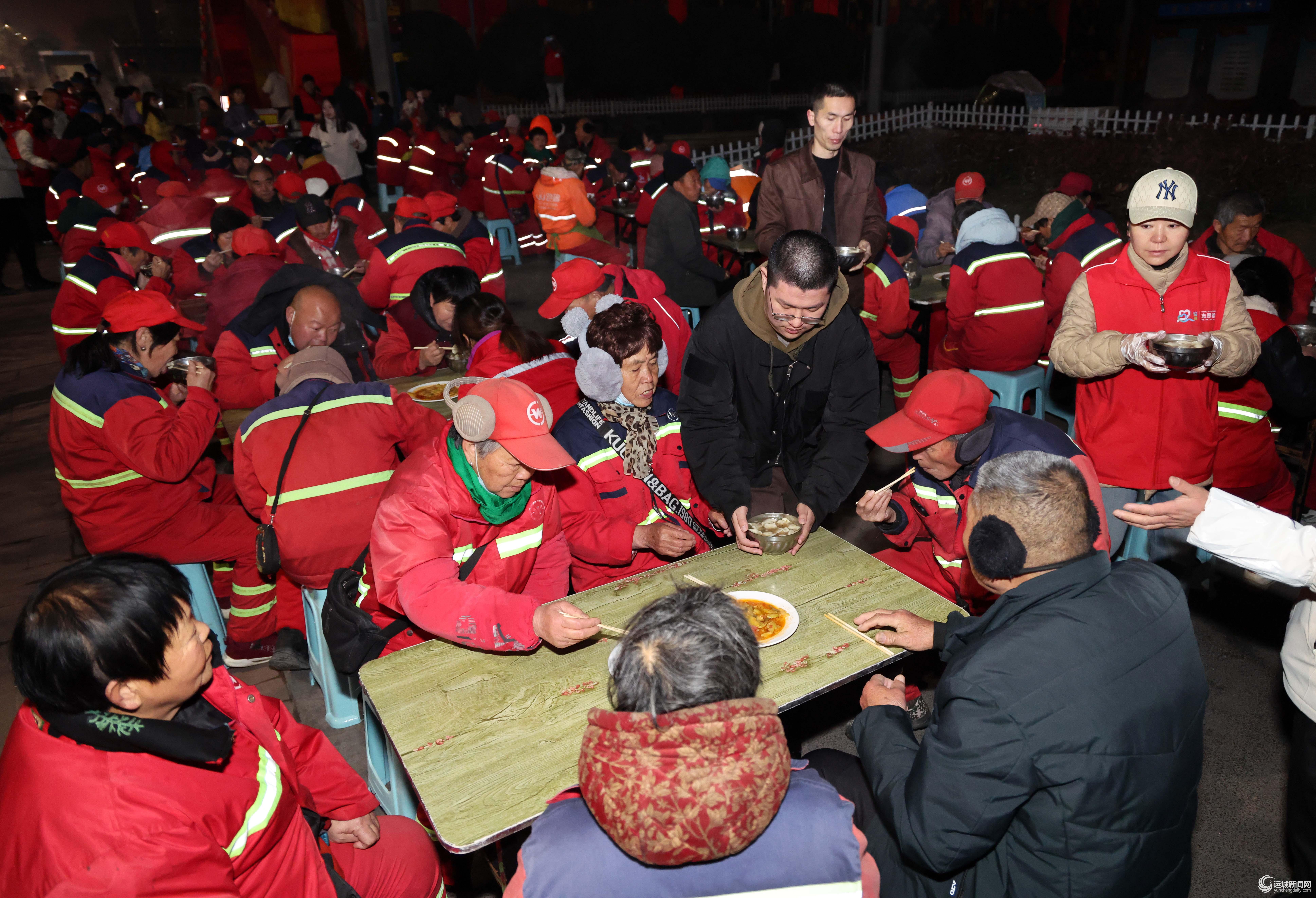 2月17日,大年初一,早上6时许,盐湖区第一时间志愿者协会的志愿者在中心城区南风广场为环卫工人们准备了热气腾腾的饺子,170余名环卫工人从四面八方陆续来到这里,品尝爱心早餐。