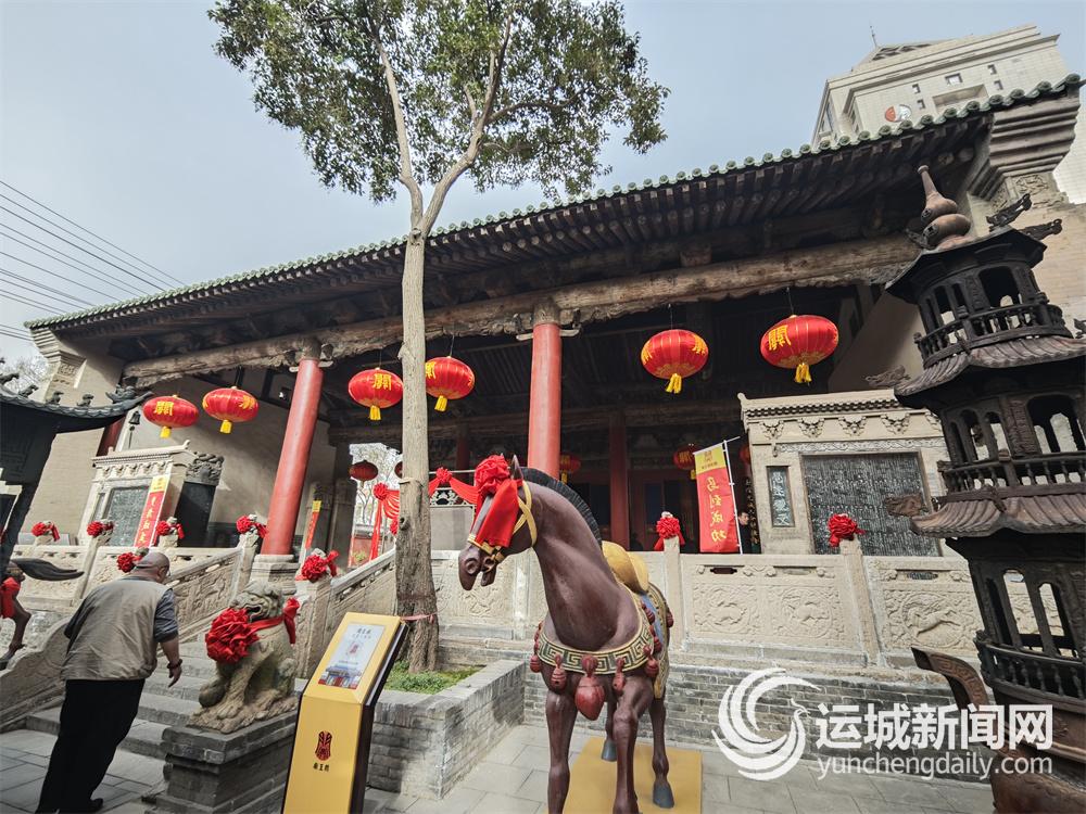 春节期间,位于中心城区的运城关王庙,比平日更多了几分人间烟火气。庙外,镇守山门的石狮子、石人早已系上了喜庆的红绸,4个大红灯笼高挂山门之上,“骏马送福、喜迎新春、国泰民安、共享繁荣”的红色条幅格外醒目,承载着对新春的美好期许;庙内,更是一派张灯结彩、喜气盈门的景象,鲜艳的红绸与红彤彤的灯笼点缀其间、交相辉映,新春的喜庆氛围浸润各个角落,也将这座古建筑衬托得愈发雅致。