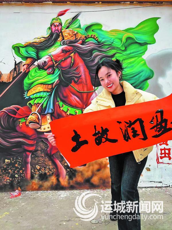 在盐湖区上郭乡上郭村的院墙上,一面白墙、几支画笔,“95后”运城姑娘王莹绘出了一幅别样的“年味答卷”——威风凛凛的关公骑马图,搭配“马到成功”四个大字,成为村里最亮眼的新春风景。