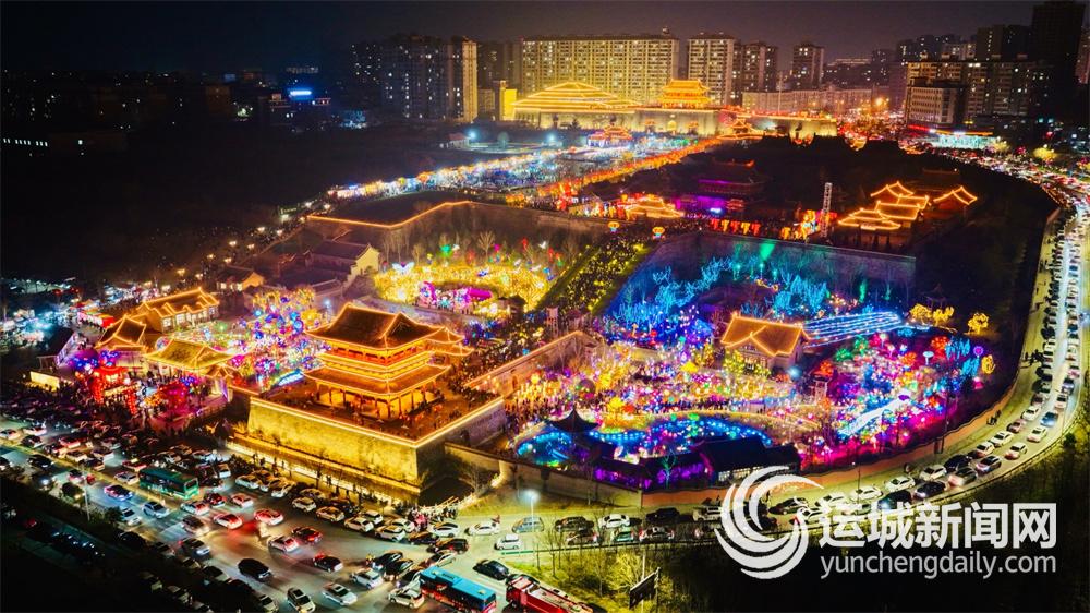 3月3日,元宵佳节,月满灯明。河东池盐文化博览园“盬盐灯会”上,千盏花灯沿着古建飞檐蜿蜒流淌,将红墙黛瓦装点成光影殿堂,吸引众多市民前来观赏。 记者 闫 鑫 陈方斌 摄