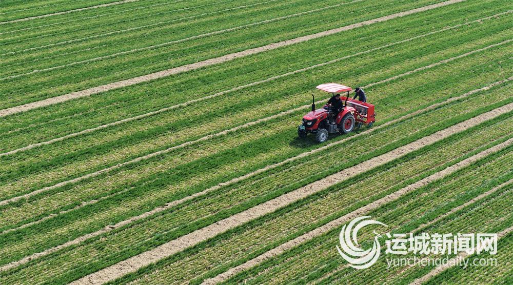 3月4日,芮城县东垆乡黄河滩地上,农民在为小麦施肥。