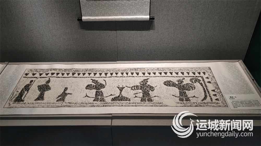 运城博物馆“大汉光影”南阳汉画像石拓片精品展“二桃杀三士”拓片 记者 刘亚 摄