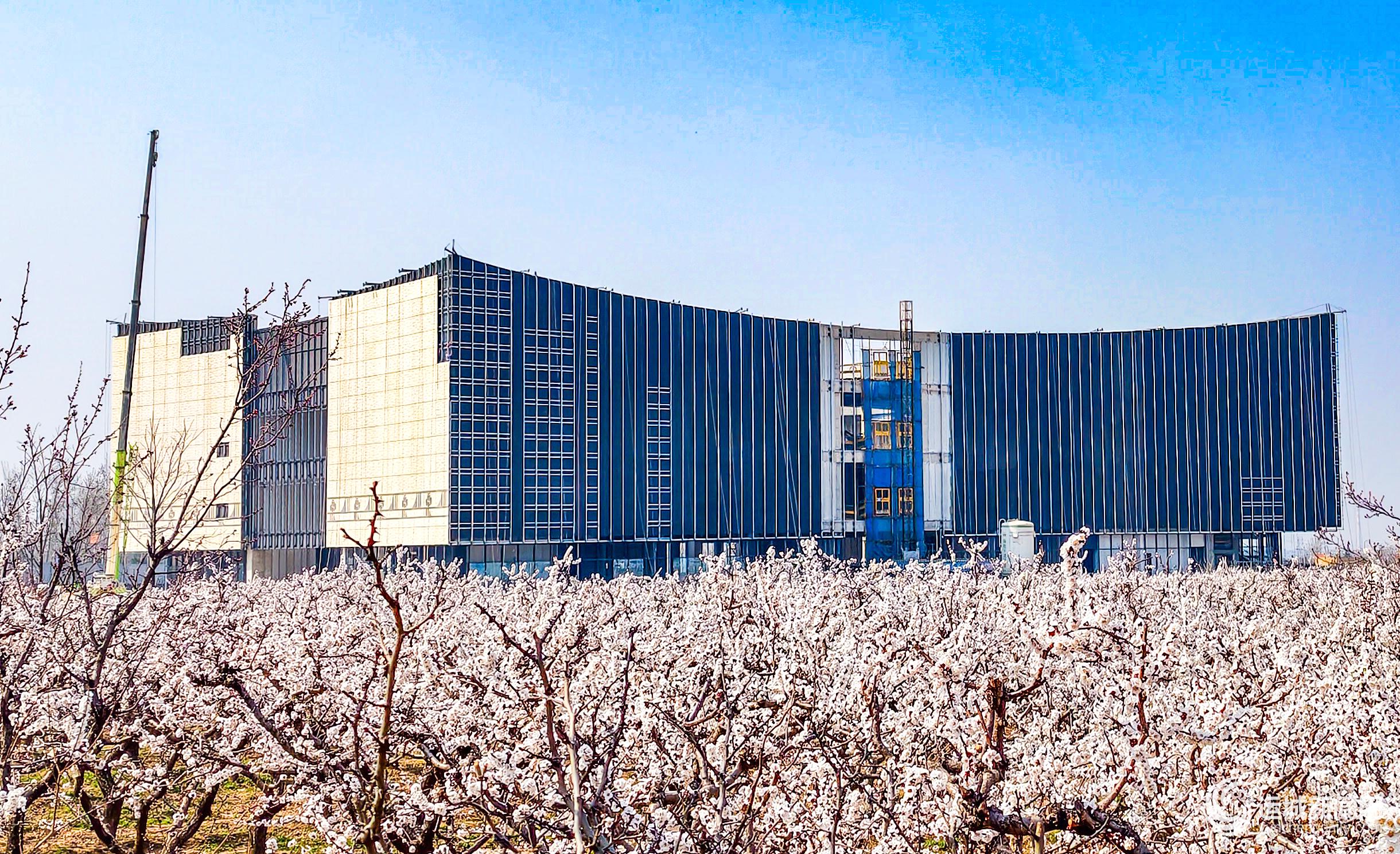 近日,夏县瑶台山下万亩杏花次第盛开,正在建设中的西阴考古博物馆屹立在花海之中,显得格外壮观。特约摄影 姚中吉