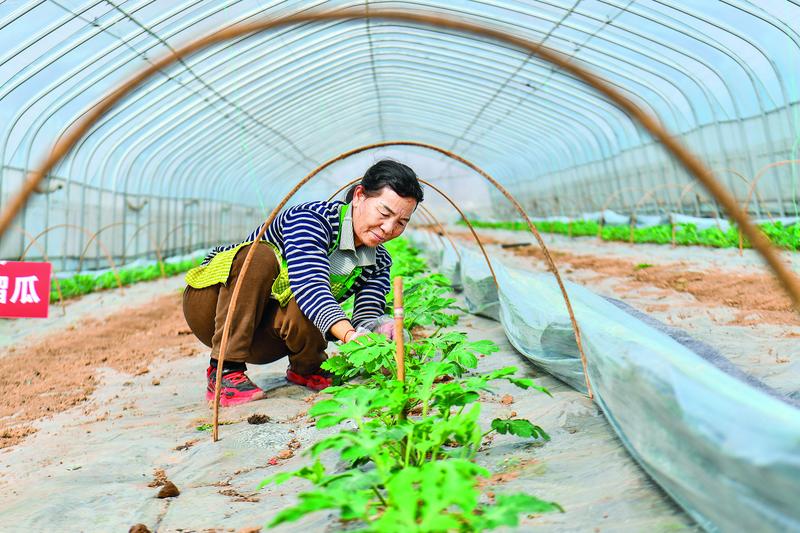 3月18日,山西省运城市夏县夏乐精品瓜业合作社的工作人员在嫁接西瓜苗。