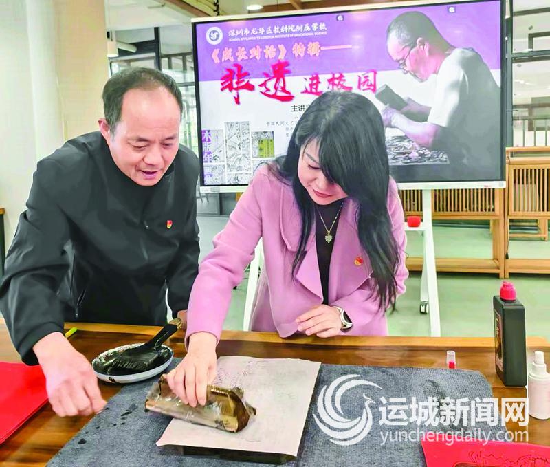 3月中旬,深圳龙华区教育科学研究院附属学校的美术教室里,墨香与木韵交织。山西省非遗绛州木版年画省级传承人郭全生,正手把手指导孩子们印制年画。他手持棕刷,将朱砂颜料均匀扫过杜梨木刻版,再覆上宣纸轻压、揭起,一幅线条遒劲、色彩鲜亮的《连年有余》便跃然纸上。