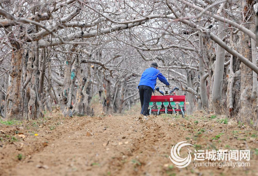 3月21日,万荣县高村镇南里村果农在为果树追肥。