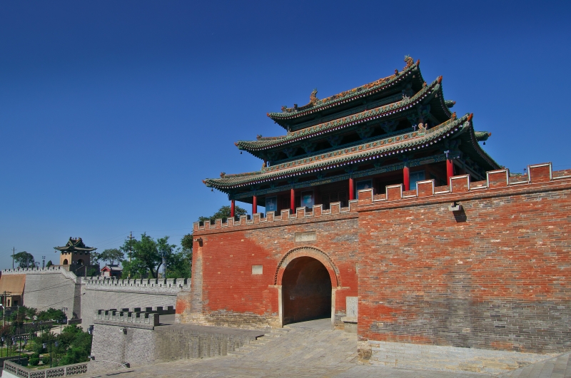 创建于元至正年间(公元1341—1368年),屡次重修,现存主体建筑为明代遗构,距今已有600多年的历史。楼身三层,面宽五间,进深四椽,三重檐歇山顶。周有回廊,鼓式柱础,下辟东西向砖券门洞,门楣前后有匾额,东为“涵远”,西为“振昕”。