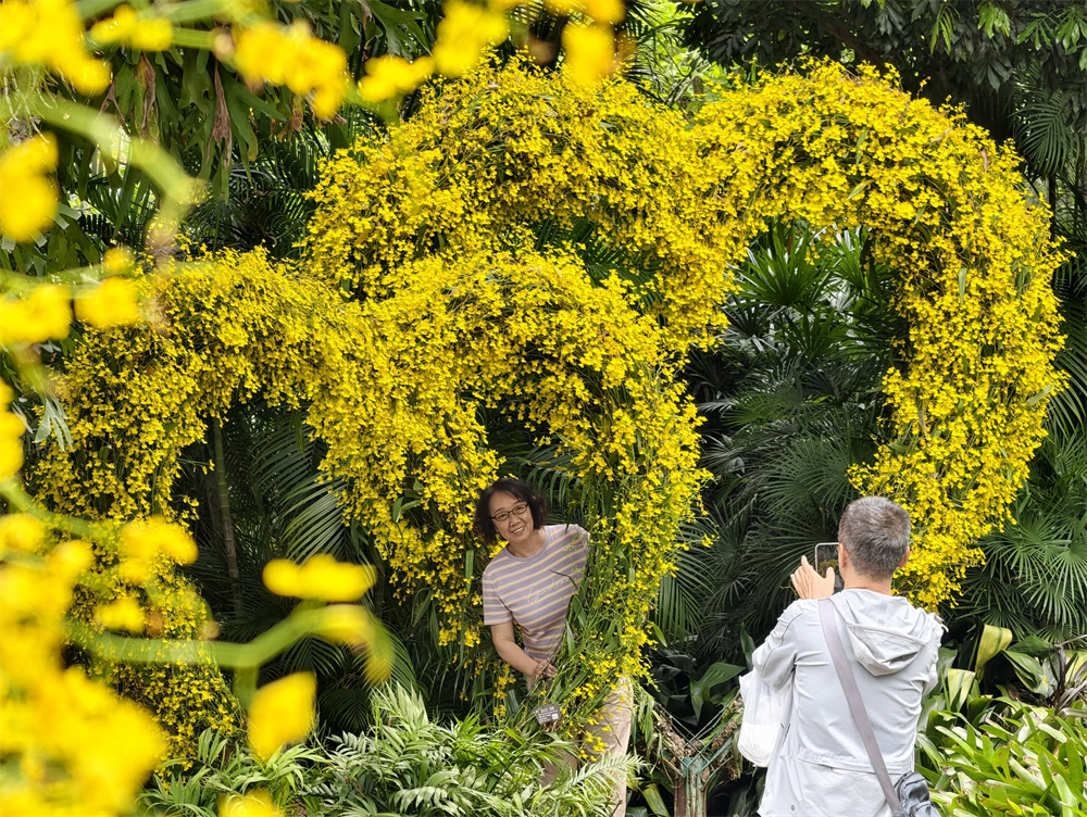 3月25日,游人在广西南宁市青秀山风景区赏花拍照。新华社发(喻湘泉 摄)