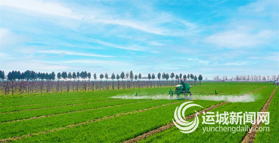 一犁春雨,万户春耕。近日,临猗县农民迎着晨光,抢抓农时,在田间喷防、浇水、施肥,着力加强小麦田间管理,确保今年小麦丰产丰收。