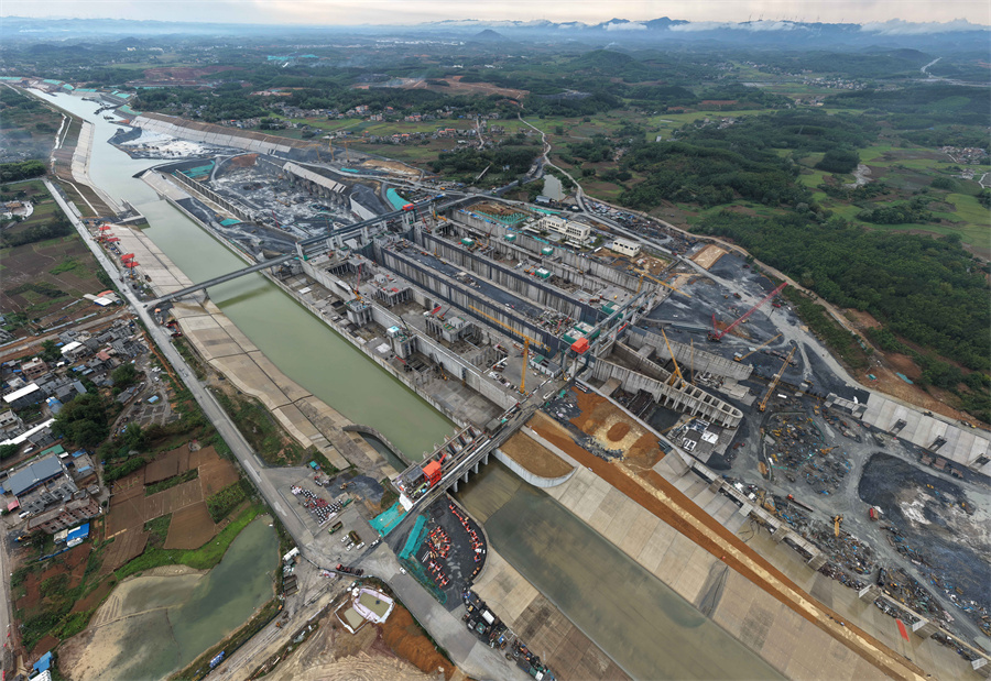 时下,广西平陆运河工地上万名建设者正抢抓工期,加快推进关键施工工序。目前,运河南宁段已实现全线通水、三大枢纽金属结构安装进入尾声。