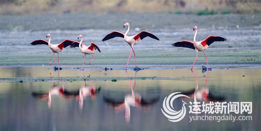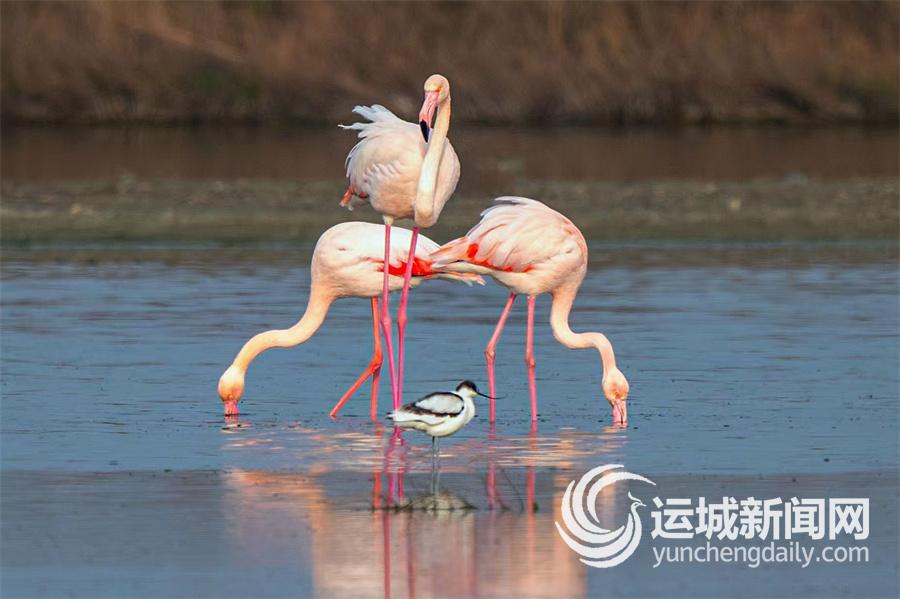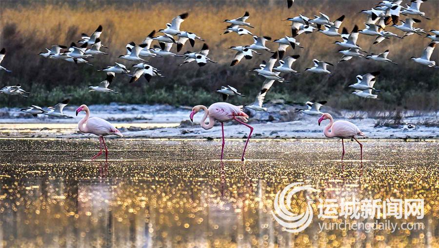 自2014年首次现身盐湖,几乎每年冬季,运城盐湖都会迎来自带“生态流量”的火烈鸟。这些粉色身影在盐湖翩跹起舞,吸引全国游客前来“打卡”,赏火烈鸟也逐渐成为我市文旅的一张亮丽名片。
