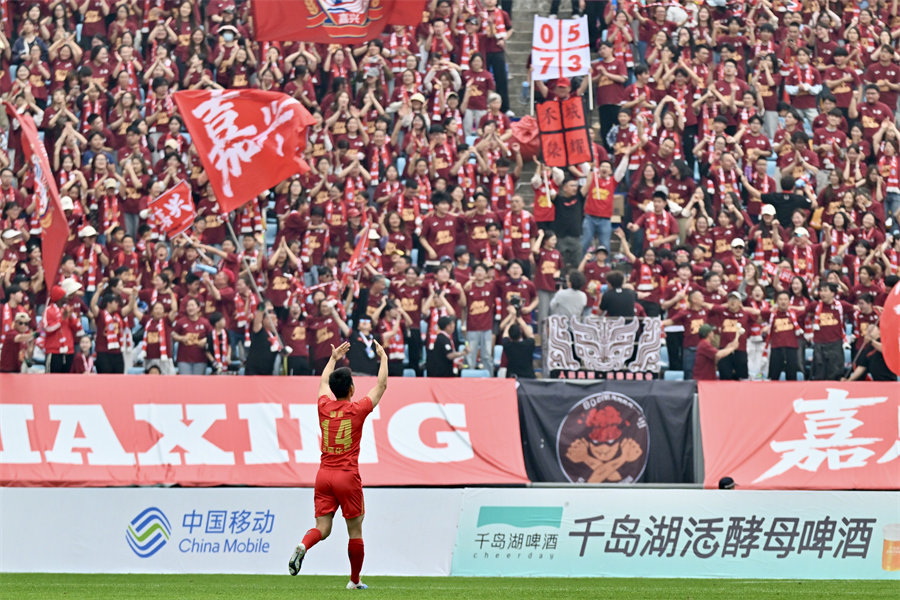 当天,浙江省城市足球联赛在嘉兴市体育中心举行开幕式。在赛事揭幕战中,嘉兴队1比0战胜衢州队。 新华社发(王振宇 摄)
