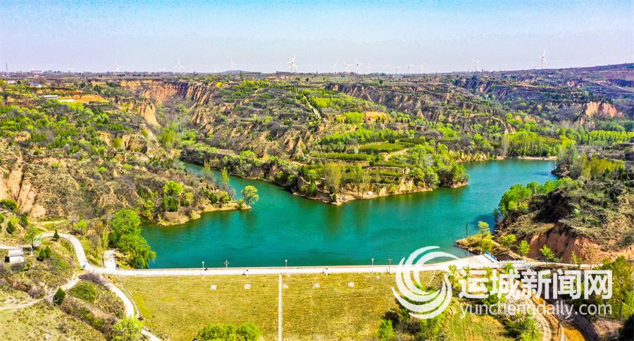 4月7日,俯瞰平陆县张店镇南窑水库,风光旖旎。碧水与周边的树木、梯田、道路相映成趣,构成一幅美丽画卷。