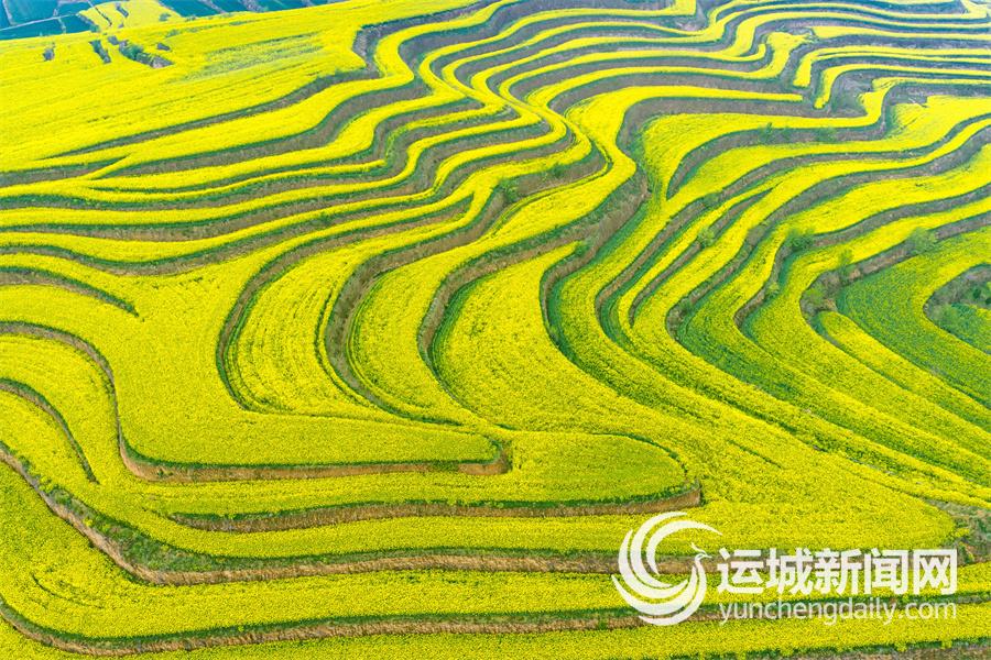 4月9日,闻喜县郭家庄镇东坪村油菜花迎来盛花期。漫山遍野金黄璀璨,层层叠叠铺满沟壑梯田,宛如为山野披上一袭耀眼的“黄金甲”。 特约摄影 杨建峰