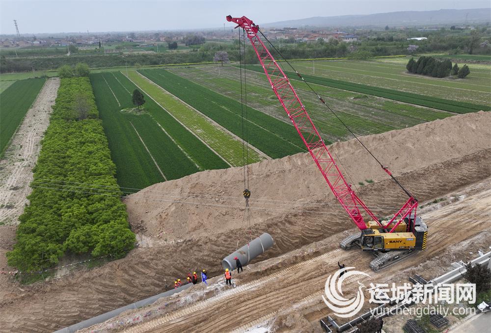4月13日,在稷山县清河镇清河村,万家寨水控集团的农田灌溉管道施工有序推进。