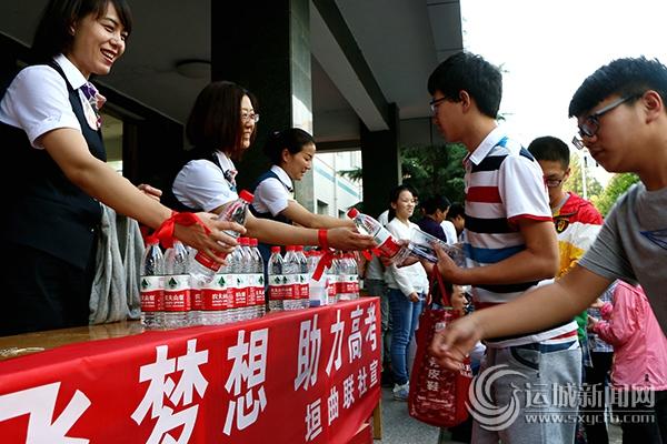 6月7日,垣曲县农村信用合作联社“红丝带”志愿者在该县各考点外,开展“放飞梦想·助力高考”公益活动。