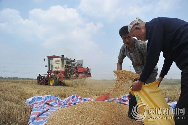 近日,新绛县龙兴镇周庄村村民在抢收小麦。