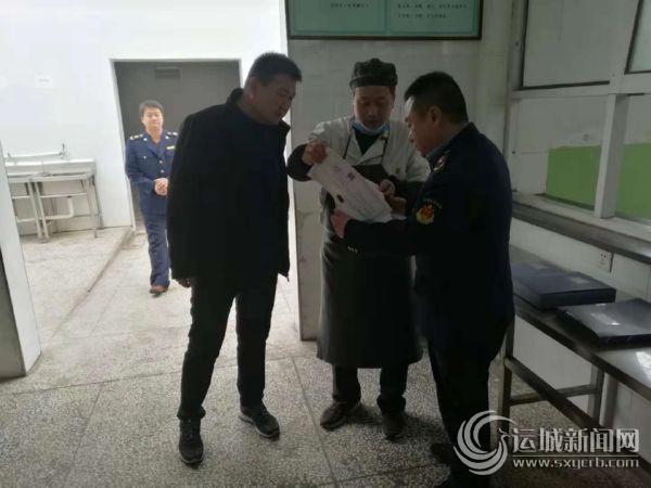 检查人员在垣曲县银杏初中食堂查看食材票证 刘凯华 摄
