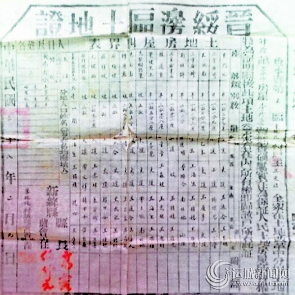 本网讯 近日,在新绛县三泉镇席村,发现了一张晋绥边区的土地证。